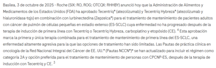 La aprobación de la FDA está basada en los resultados del ensayo de 'Fase 3 IMforte' que demostró que la combinación de lurbinectedina con atezolizumab redujo el riesgo de progresión de la enfermedad o muerte en un 46% y el riesgo de muerte en un 27%, en comparación con atezolizumab en monoterapia en mantenimiento