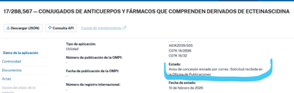 By the way... patente de ADC con ecteinascidinas que es por fin concedida en USA, ya estaba aprobada en Europa, Japón y China y se ha tramitado en muchos países más, de las patentes de ADC que mueve PHM es la más extendida. Hay unos 20 ADC incluidos en la patente, incluyendo ADC de ecubectedina y PM54, y se unen en al trastuzumab de Roche. La única opción con esto es venderlo o licenciarlo, PHM no tiene capacidad de fabricación, como ya pasó con aquellos ADC licenciados a Seagen: