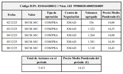 Yo espero una cancelación relevante (al menos del 5%) antes de la celebración de la junta ordinaria del 2026. Tal vez, aprovechen para algún evento adicional, tipo split o similar.