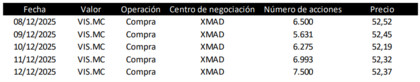 Ejecución programa de recompra del 8 de diciembre y el 12 de diciembre de 2025, la Sociedad ha llevado a cabo la compra de 32.899 acciones propias. A continuación, se presenta el desglose de las operaciones sobre las propias acciones de la Sociedad realizadas durante el periodo indicado.